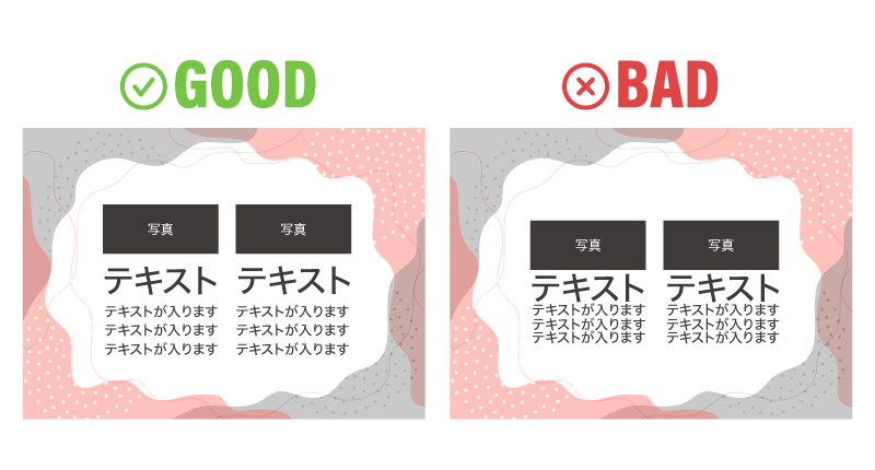 ここでは、デザインがパッと見て「なんか微妙…」となってしまう根本原因を、具体例とともに解説します。