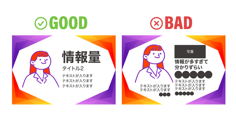 情報を盛り込みすぎると、「結局なにが言いたいの?」と伝わりません。