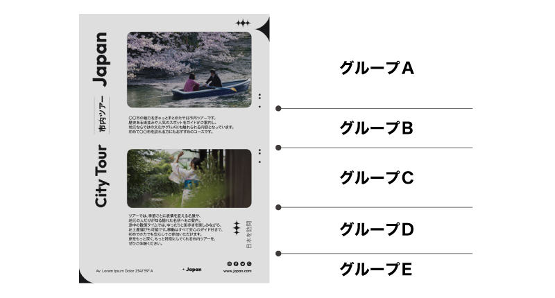 グループ化することで、内容のつながりが分かりやすくなり、全体がすっきり整理されて見えます。